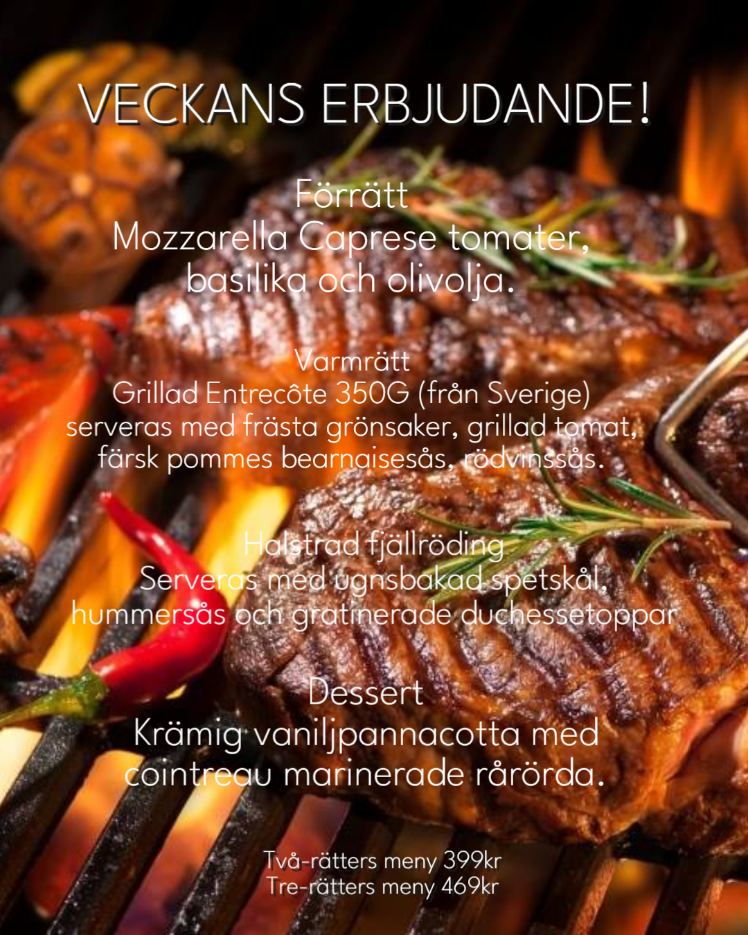 Två-rätters meny 399kr - Tre-rätters meny 469kr